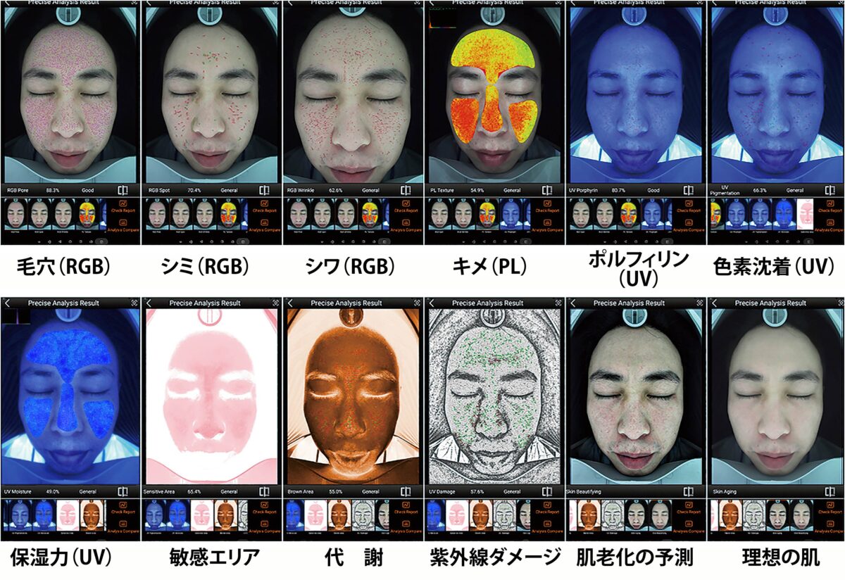肌の表面から内部まで3種類のレンズにより10種類の画像が撮影されます。