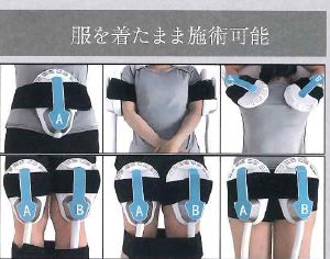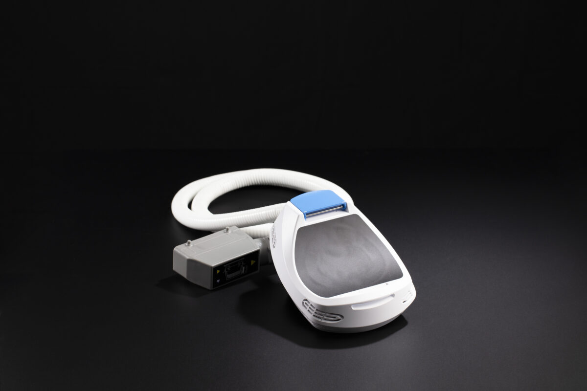 オプションの湾曲ハンドピースで二の腕、ふくらはぎ、もも裏や細部の施術にも・・